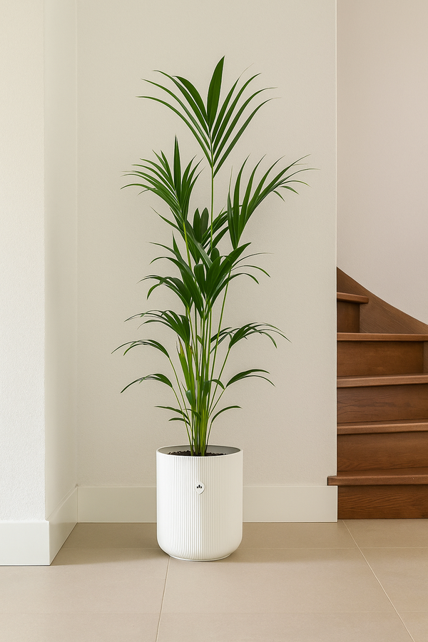 Haal tropische klasse in huis met deze prachtige Kentia palm (Howea forsteriana) van ongeveer 160 cm hoog, compleet geleverd in de stijlvolle Elho Vibes Fold Round pot in het wit. Deze elegante kamerplant is perfect als natuurlijke sfeermaker in een woonkamer, kantoor of entreehal. Dankzij zijn luchtzuiverende werking én tijdloze uitstraling is hij geliefd bij zowel interieurontwerpers als plantenliefhebbers.